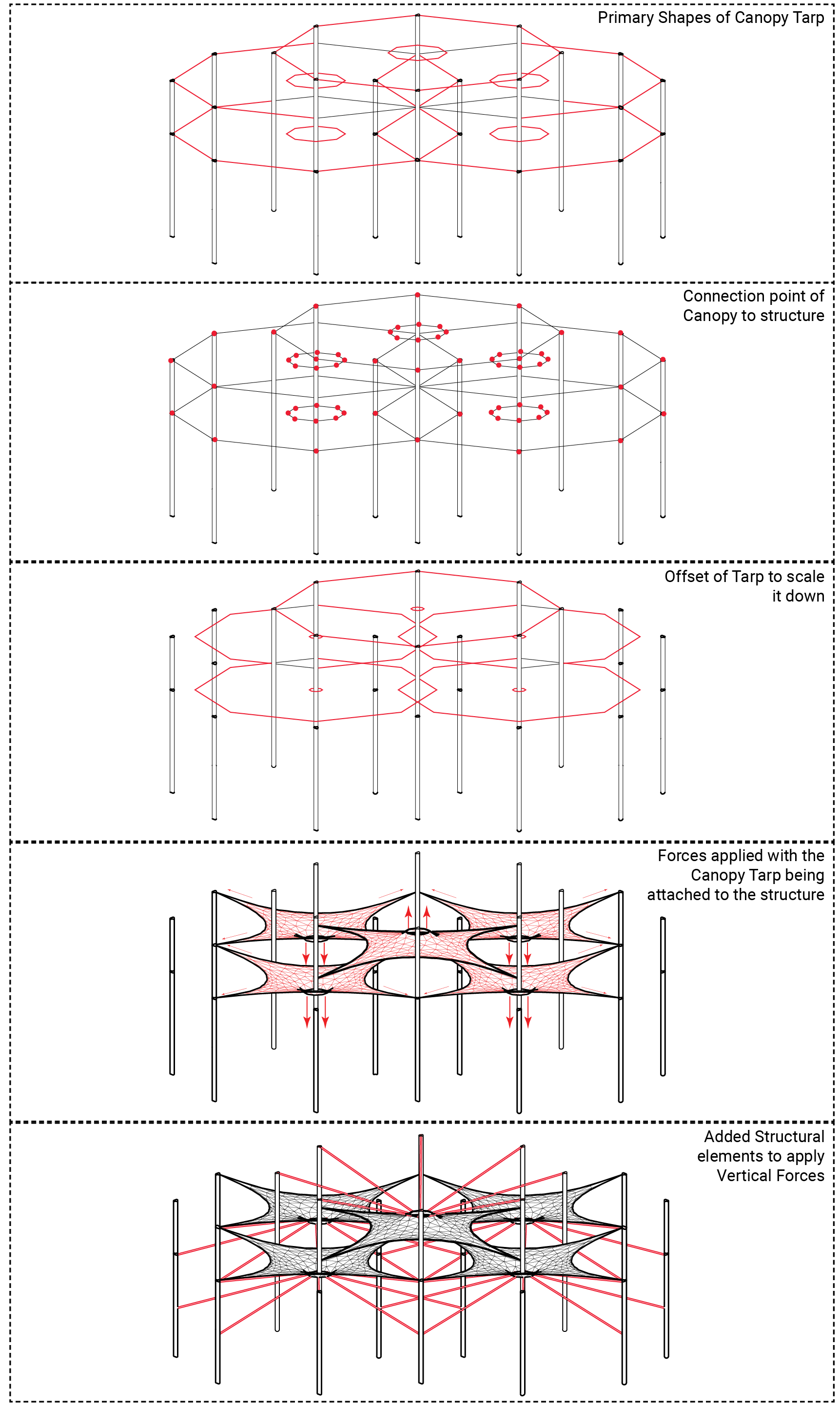 By experimenting with algorithms, created multiple design alternatives, uncovering patterns and spatial variations through computational modeling.